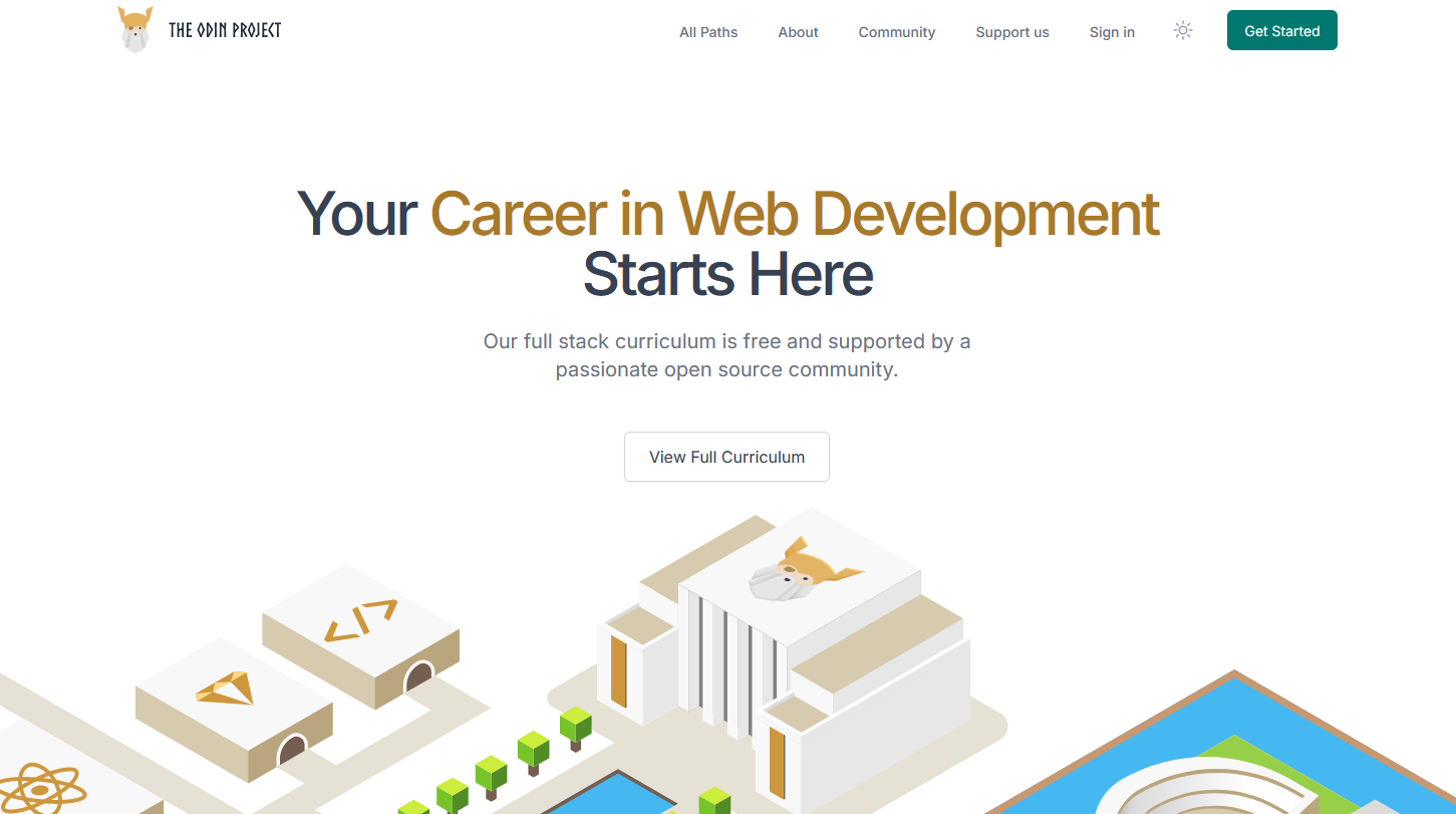 Web development courses for free. Recommended by a fellow dev. Fullstack curriculum. Strange name.